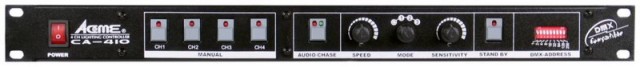 4-х канальний DMX-керований силовий блок (світчер) для управління світловими приладами, 1 кВт на канал, музична активація, 4 вбудовані програми, рекові виконання (19 ")