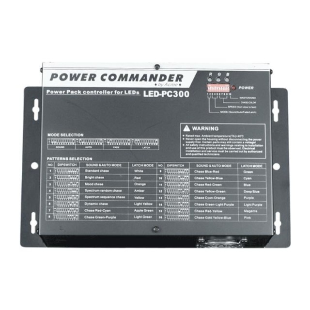 Управління: DMX 4 канали, вбудовані макроси, звукова активація. 220 В, потужність 300 Вт. Розмір: 252 х 150 x 88мм. Вага: 6,4кг