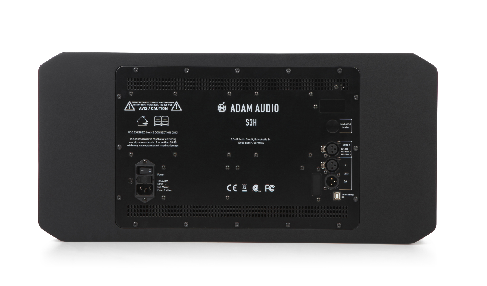 Благодаря колоссальному запасу мощности усилителя и трехполосной конфигурации (оптимально настроенная для использования в горизонтальном положении), S3H задумывался как монитор среднего поля прослушивания, но также может использоваться в компактных контрольных аппаратных. Как и у всех систем ADAM Audio, S3H имеет мощный, пробивной музыкальный звук с кристально-чистым воспроизведением среднечастотного диапазона.