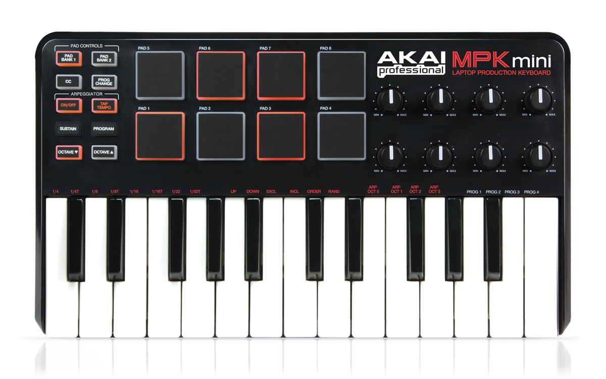 AKAI Pro MPK mini - ультракомпактная мини-клавиатура с внушительным набором кнопок, ручек и пэдов, для максимальной производительности и управления. MPK mini поражает идеальным балансом между портативностью и гибким программным обеспечением, позволяющим объединять с другими популярными продуктами Akai (LPK25 и LPD8). С 25-нотной клавиатурой, 8-ю кнопками с подсветкой, пэдами в MPC-стиле и 8 Q-Link ручками - MPK mini универсальный портативный контроллер, позволяющий творить музыку в любом месте, где бы Вы не находились