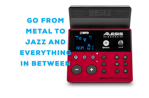 Nitro Pro - це ідеальна електронна ударна установка, щоб почати імпровізувати, записувати та стати найкращим барабанщиком. У комплект входить все, що вам потрібно для навчання, практики, імпровізації та запису. Nitro Pro просто означає більше гри на барабанах!