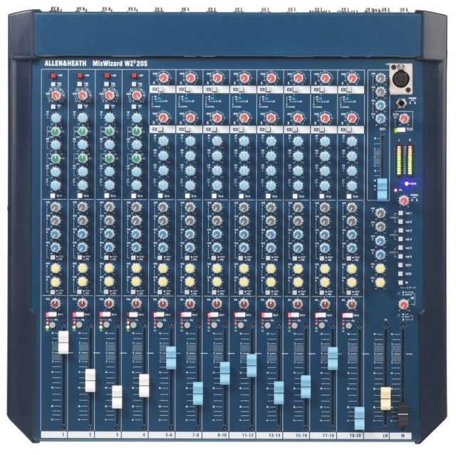 Allen&Heath WZ 20 S - серия микшеров MixWizard оснащенная 4 моно и 8 стерео каналами. Каждый моно канал имеет раздельные микрофонные/линейные входы на TRS Jack и разъемах XLR, 4-х полосный эквалайзер с 2 полупараметрическими полосами и 6 посылами. Стерео каналы имеют две пары входов: входы A на разъемах RCA и входы B на TRS Jack. Входы A и B можно использовать попеременно или одновременно, для каждой пары есть независимая регулировка входного уровня.