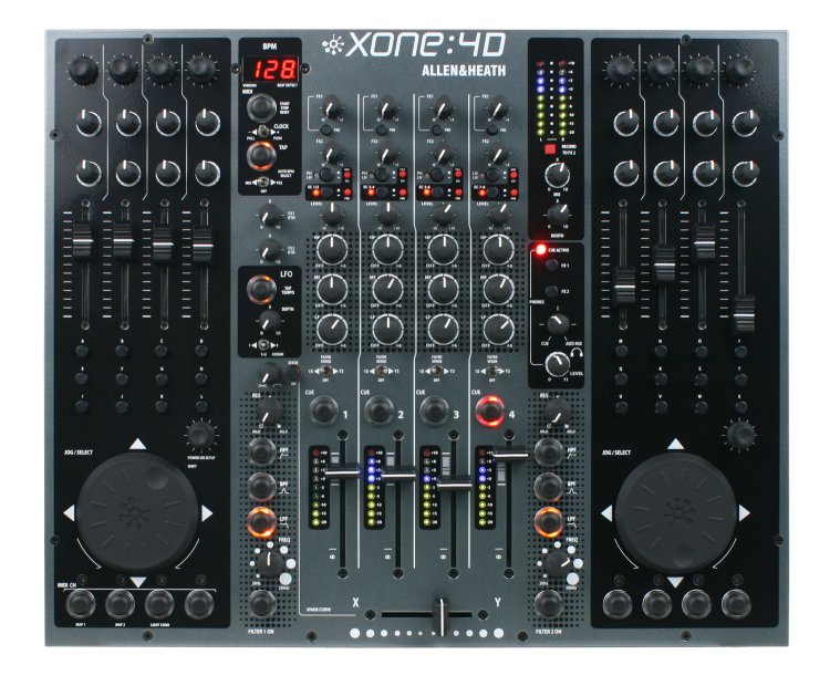 - Xone:4D совместим с ПО компьютера, имеющим назначаемые MIDI функции, например, контроллер света или программы визуальных эффектов