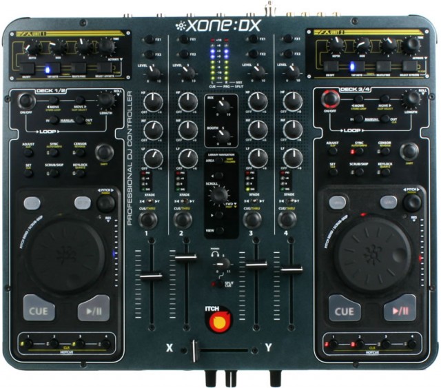 Allen & Heath Xone: DX - представляет собой рабочую станцию/микшерный пульт для DJ с MIDI-контроллером. Более того на борту имеется встроенная 20-ти канальная звуковая карта с USB 2.0, 4-х канальный пульт и два эмулятора деки.