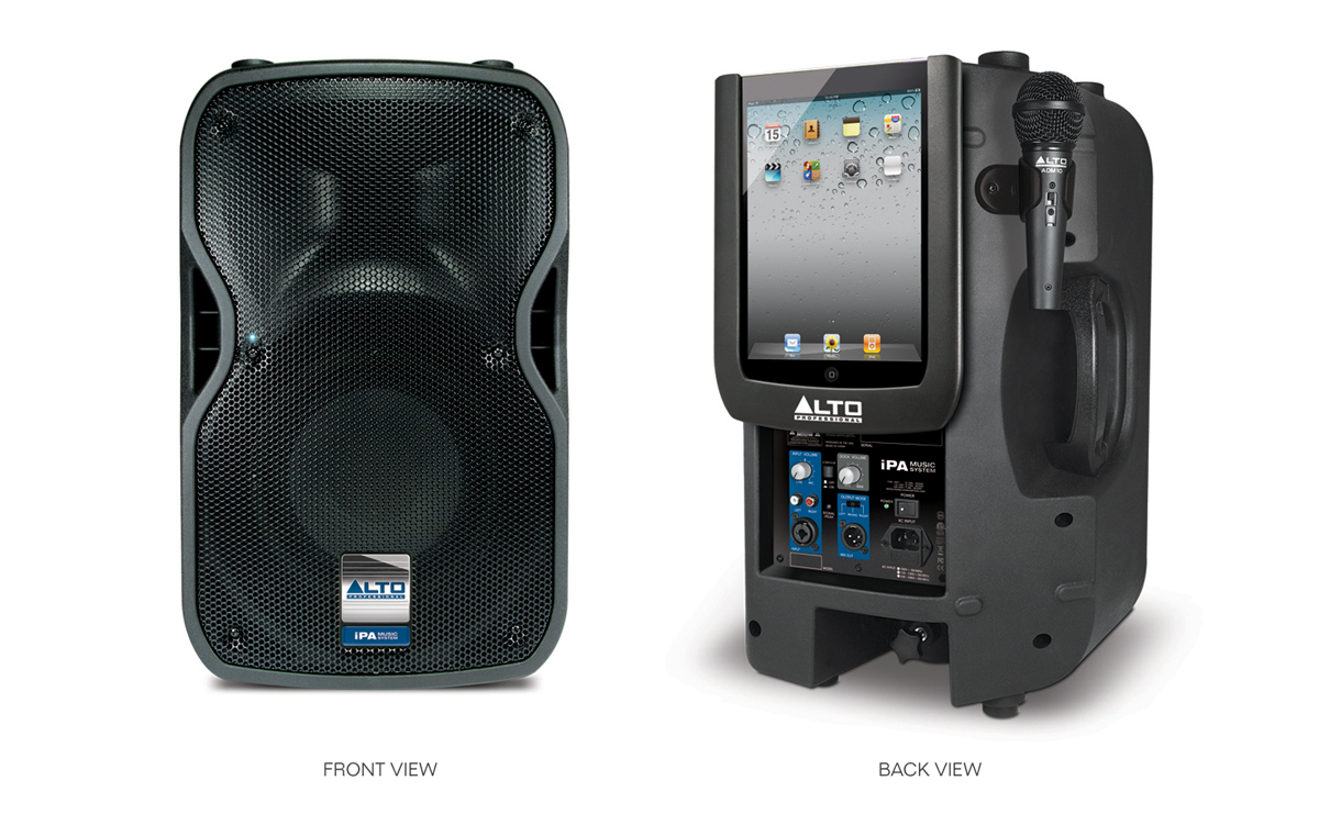 2-х полосная активная АС, 30-контактный док для Apple iPad, ADM10 радиомикрофон, мощность 200 Вт, НЧ 10 дюймов, ВЧ 1", АЧХ 42 Гц–20 кГц, SPL 120 дБ, входы combo XLR/Jack, выход XLR, стакан 36 мм.