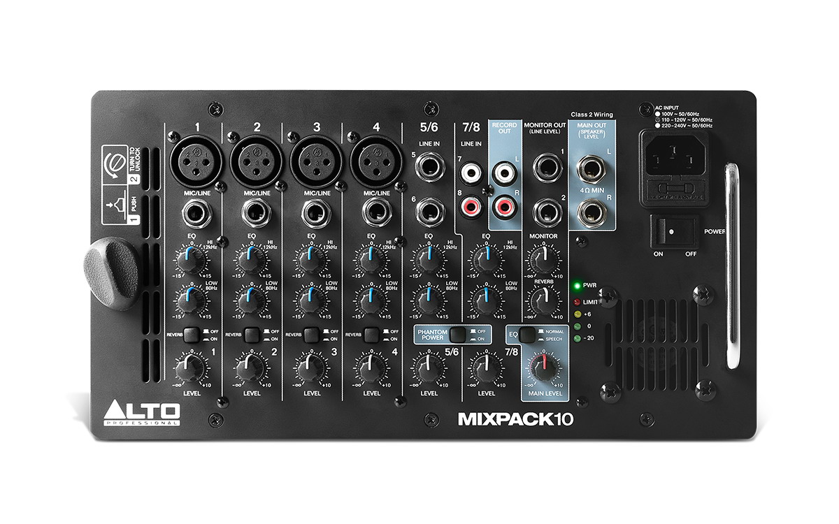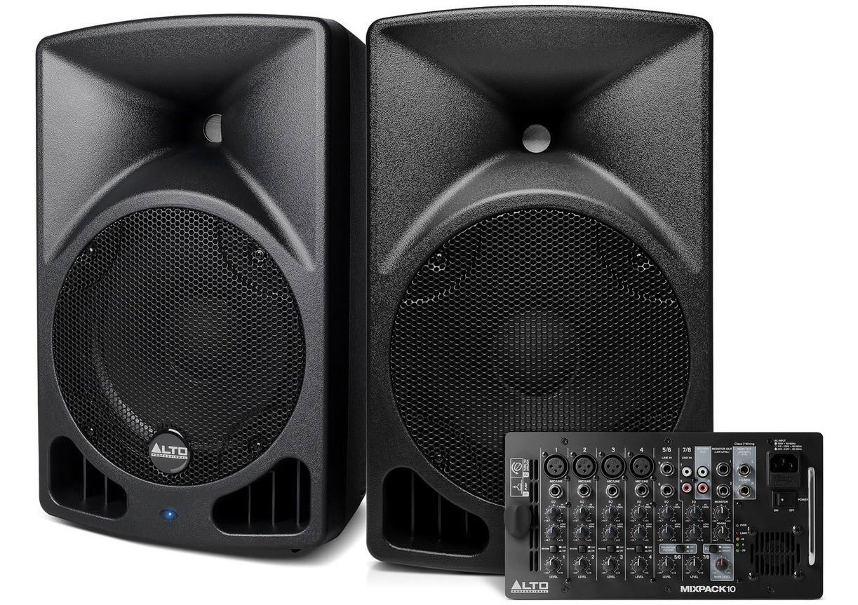 Alto Professional MixPack 10 - готовый комплекс с активным микшером. Одним из основных достоинств MixPack 10 это 200 Вт выходной мощности в сочетании с 2-х полосными акустическими системами, оборудованными 10" НЧ излучателями.