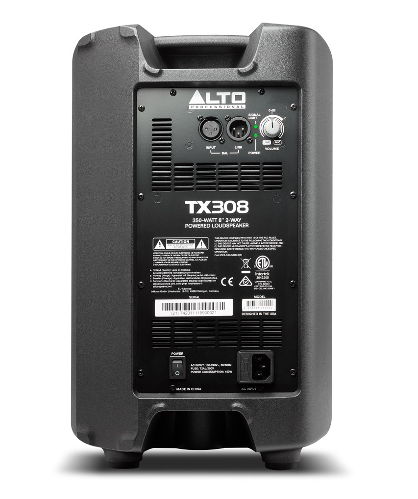 Alto Professional TX308 - двухполосная акустическая система мощностью 300 Вт (пик) с двумя усилителями. Длинноходный 8" НЧ динамик и 1" компрессионный драйвер в рупоре улучшают характеристики воспроизведения и создают покрытие с углами 90˚х60˚, что идеально подходит при охвате площадки.