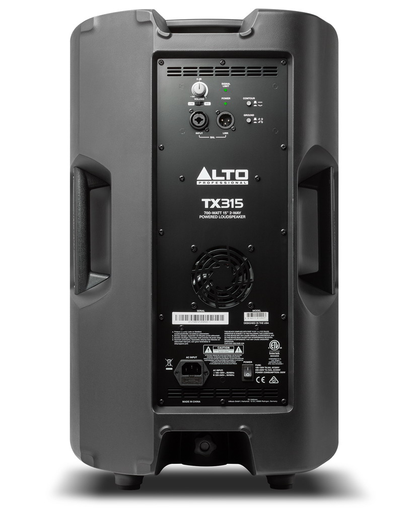 Alto Professional TX315 - двухполосная акустическая система мощностью 700 Вт (пик) с двумя усилителями. Длинноходный 15" НЧ динамик и 1" компрессионный драйвер в рупоре улучшают характеристики воспроизведения и создают покрытие с углами 90˚х60˚, что идеально подходит для охвата площадки.