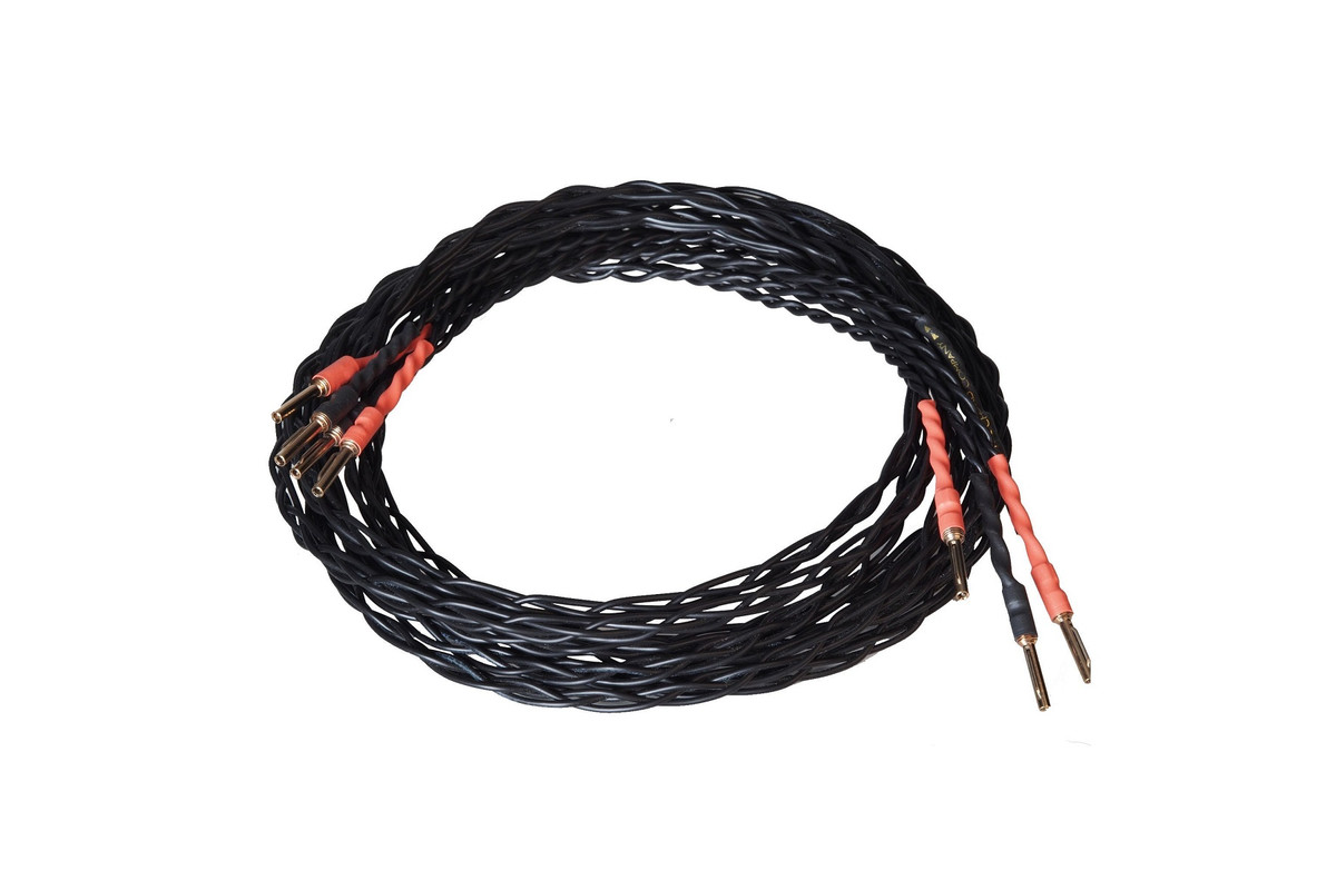Акустический кабель, жила: бескислородная медь с внешним покрытием из серебра, оболочка: плетеная ПВХ оплетка, 4 разъема тип Banana, длина 2.5 м, цвет черный.