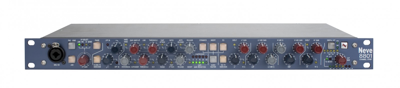 AMS NEVE 8801 - это Channel Strip прибор взятый с канального блока пульта Neve 88R, лучшего аналогового пульта в истории, и помещенного в 1U 19-дюймовый рэковый корпус. Рэковый вариант обеспечивает все функции канальной секции легендарного пульта. Устройство объединяет классический микрофонный предусилитель Neve, эквалайзер и процессор динамической обработки. Причем последний разработан на основе процессора, применяющегося в популярном микшерном пульте Neve 88R. 8801 Channel Strip производится в Англии с использованием ручной сборки и пайки и характеризуется очень высоким качеством звучания.