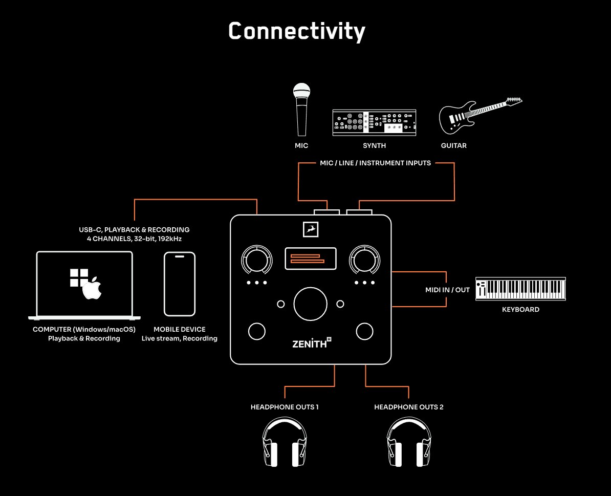 Zenith 2 обеспечивает впечатляющий динамический диапазон до 123 дБ — уровень, раскрывающий мельчайшие нюансы, глубину и чёткие транзиенты. Профессиональная студийная конструкция гарантирует ультранизкий шум и точную стереопанораму. Вы получаете детализированный и естественный звук — лучшую основу для творчества.