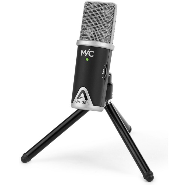 Apogee MiC - конденсаторный микрофон с кардиоидной диаграммой направленности. Усиление обеспечивает встроенный предусилитель. Уровень сигнала изменяться встроенным регулятором.