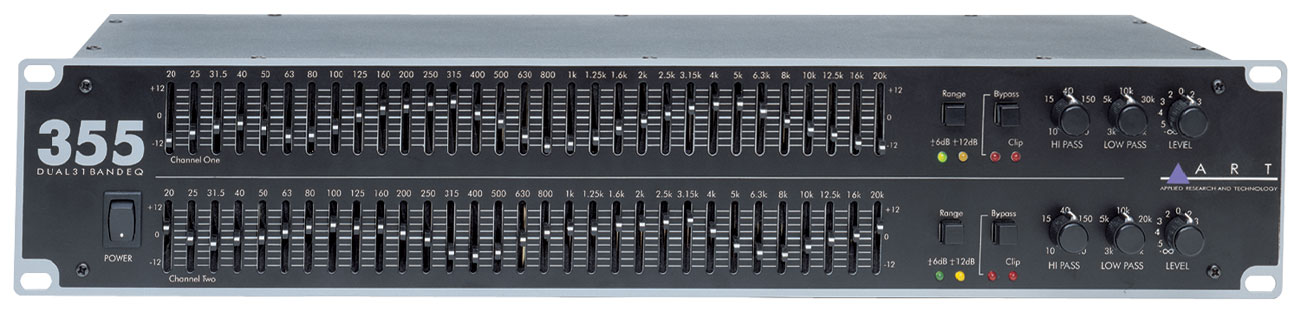 Модель ART EQ355 – это двухканальный 31-полосный (1/3 октавный) прецизионный графический эквалайзер, предназначенный для различных применений, таких как: работа с живым звуком, студийное использование, DJ практике, в стационарных установках клубов и других местах, где требуется частотная коррекция. Модель EQ355 является мощным инструментом для комплексного решения проблем со звуком и для создания необычных звуковых эффектов.