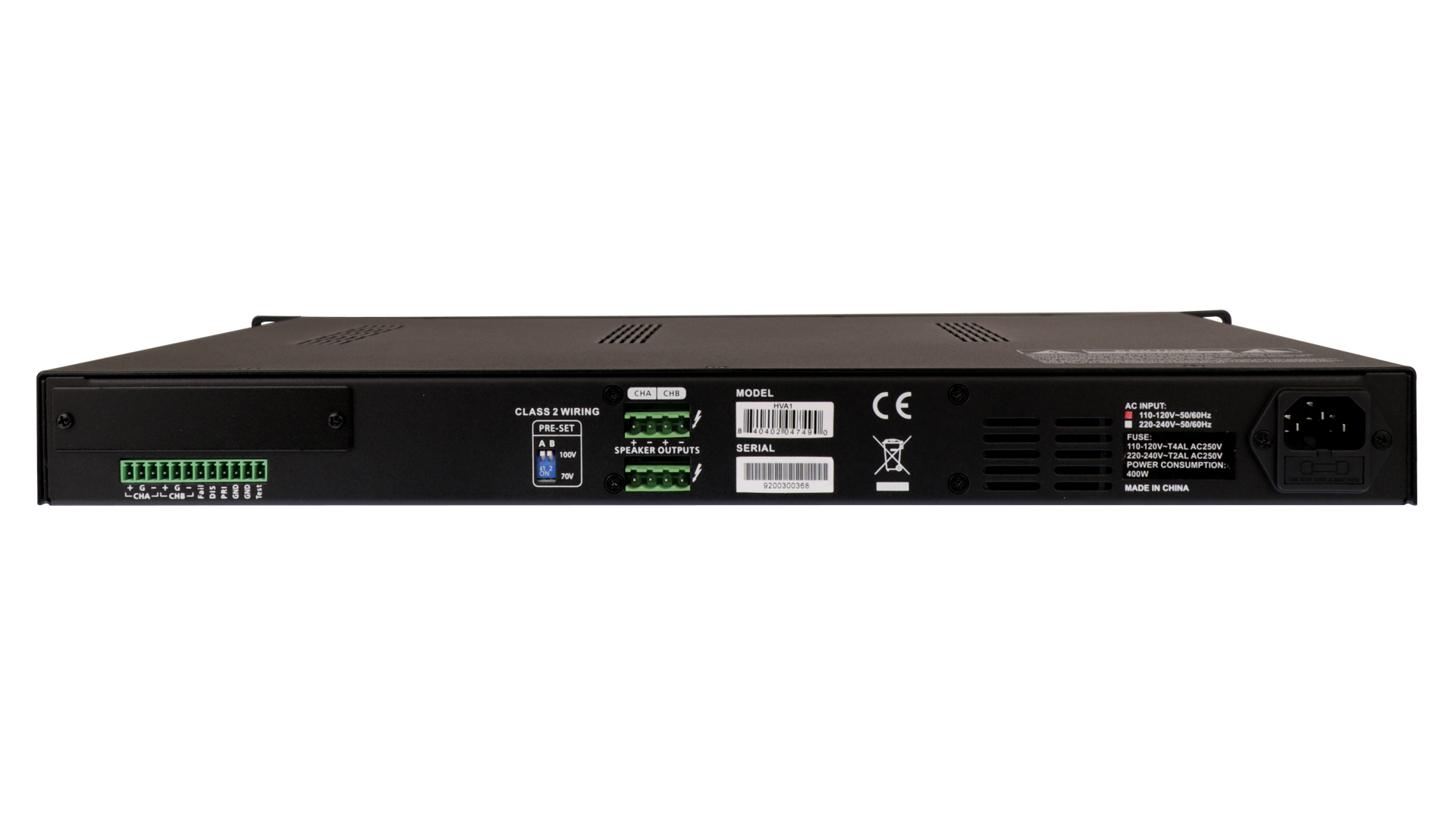 Підсилювач потужності (1U), клас D, 135W *2 - 70 / 100В, 1,8 кг. Вбудований лімітер, конвекційне охолодження.