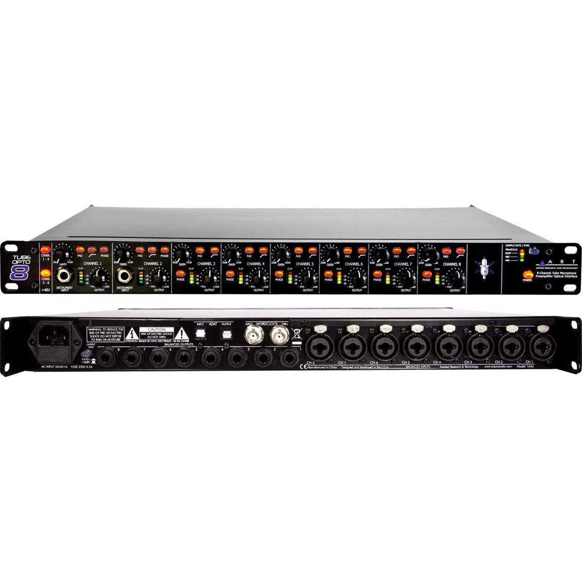 ART TubeOpto 8 - 8 канальный ламповый предусилитель с AD/DA конверторами формата ADAT. TubeOpto 8 идеальное расширение на 8 входных и выходных каналов для любого аудио интерфейса, оборудованного ADAT, рекордера или цифровой аудио рабочей станции DAW.