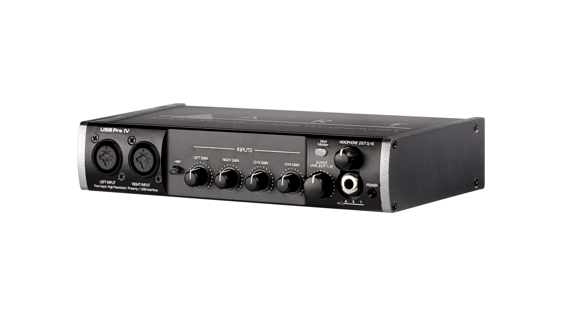 USB IV - представляет собой высококачественный USB аудио интерфейс с поддержкой частоты дискретизации до 192 кГц и конфигурацией каналов 4 входа/4 выхода. Входы могут использоваться в любой комбинации, 4 микрофонных входа или 2 Hi-Z инструментальных входа и 2 линейных входа.
