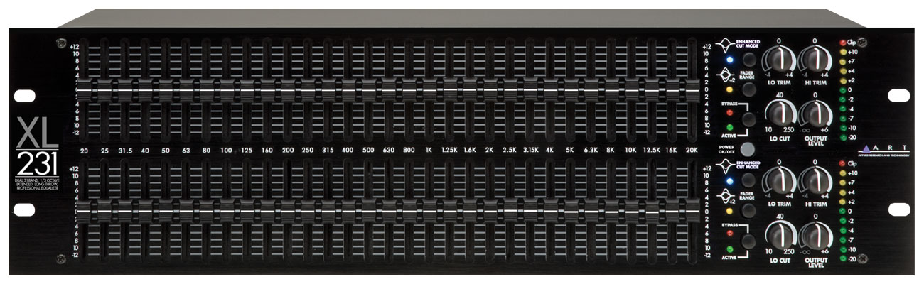 АRТ XL 231 двухканальный 31 полосный (1/3 октавы) графический эквалайзер соответствующий самым высоким техническим стандартам, обеспечивает оптимальную точность эквализации благодаря низкошумящим схемам и длинноходным фейдерам. Инновационная схематика эквалайзера идеально подходит для практически любых аудио задач, где особо важна точность выбора частоты, надежность работы, прочная конструкция и бесшумность во всем частотном спектре обработки. Малошумящие активные элементы с малыми искажениями дают общий динамический диапазон более 123дБ.