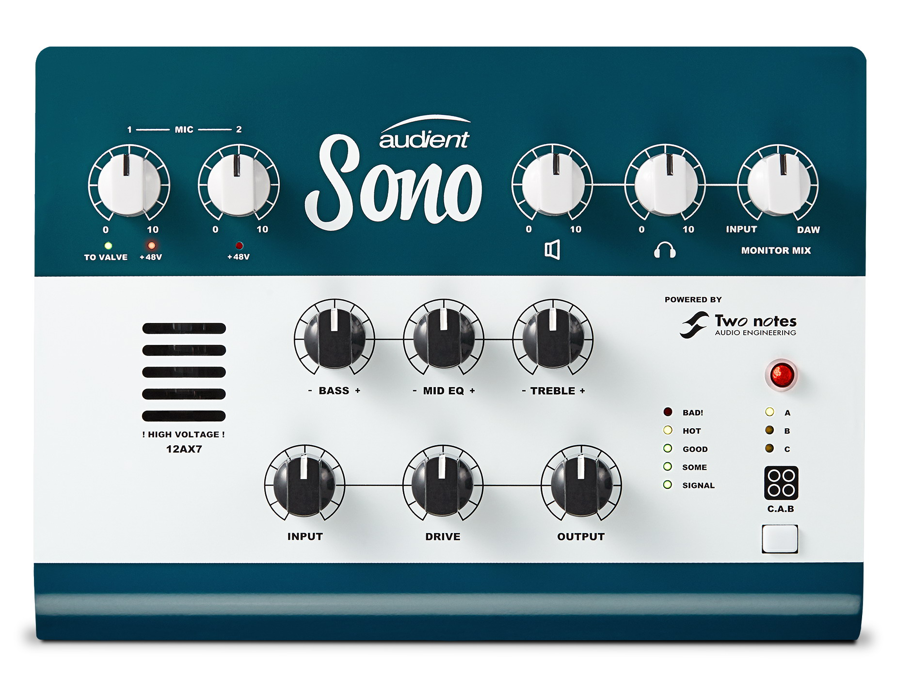 Audient Sono - аудиоинтерфейс для гитаристов и творчески настроенных музыкантов, сочетающий в себе технологию аналоговой записи Audient с лучшим в мире моделированием звучания гитарных кабинетов от Two notes с помощью лампы ECC83S. Получите записи студийного качества с двумя известными консольными микрофонными предусилителями Audient