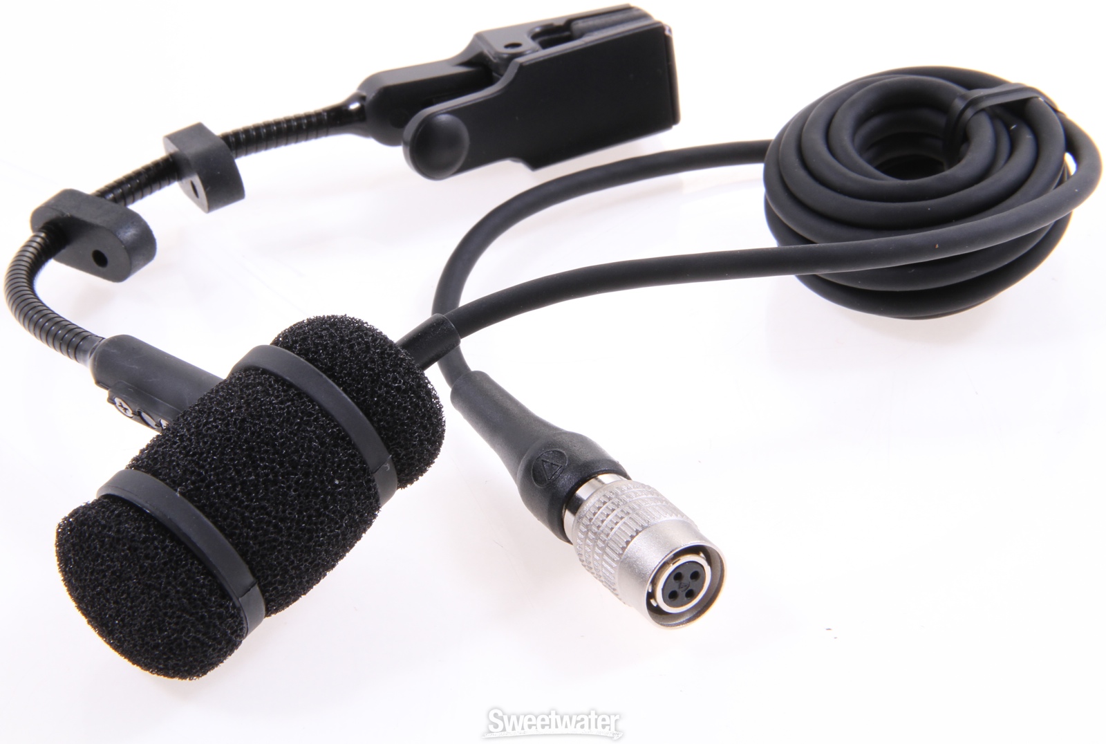 Инструментальный конденсаторный микрофон с кардиоидной направленности. Внутри внешнего корпуса находится встроенный блок питания, также в комплекте имеется кабель длиной 4 метра для соединения с предусилителем 4-pin фиксирующим коннектором для A-T UniPak®.