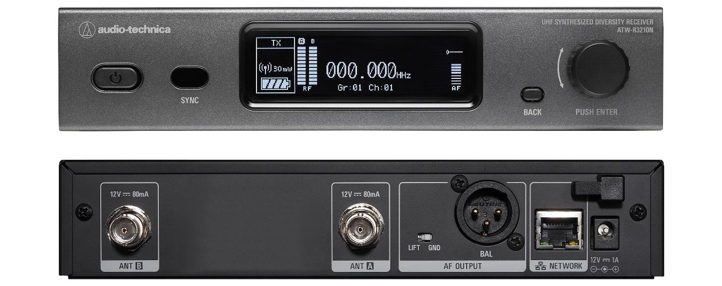 Соединение Ethernet на приемнике позволяет легко объединить несколько приемников в сеть для упрощения координации и развертывания частот с помощью программного обеспечения Wireless Manager (WMS) Audio-Technica. В каждом диапазоне частот одновременно могут работать до 40 микрофонных каналов.