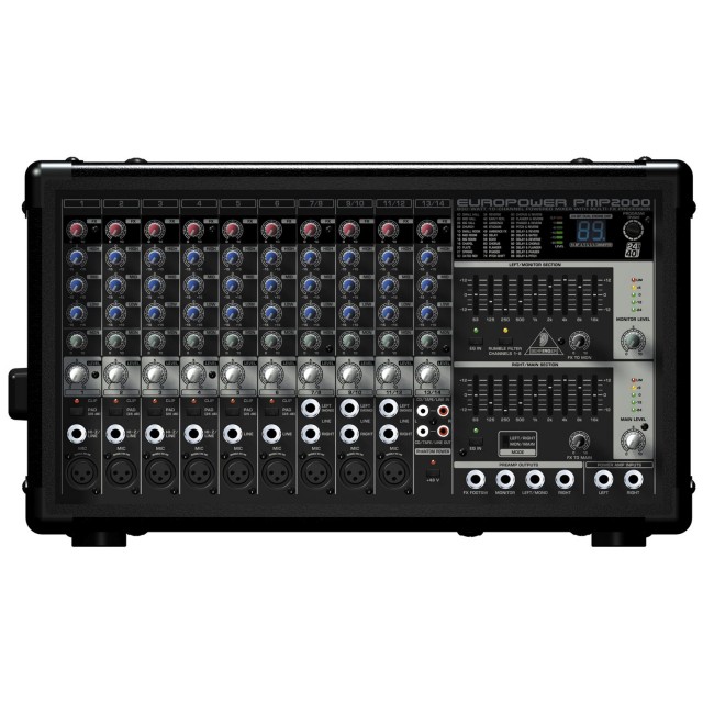 Активный 12-канальный пульт, 4 моновхода, 4 стереовхода, 6 предусилителей, 24-битный процессор эффектов, 7-полосный эквалайзер, мощность 2 х 250 Вт (500 Вт мост), импеданс 4 - 8 Ом.