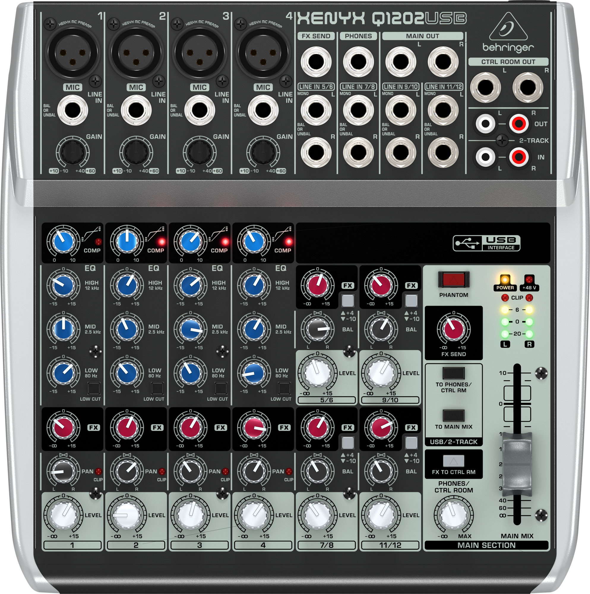 Behringer XENYX Q1202USB - универсальный малошумящий микшерный пульт с 4 моно каналами, микрофонными предусилителями и обильным набором характеристик типичных для более дорогих пультов, XENYX Q серия USB микшеров может справится с любым живым концертом и обеспечить ошеломительную профессионального качества запись. Вместе со встроенным USB/audio интерфейсом, компрессорами на всех моно каналах, эти микшеры доступны со всем записывающим и редактирующим программным обеспечением, что превратит компьютер в настоящую высокоэффективную записывающую студию.