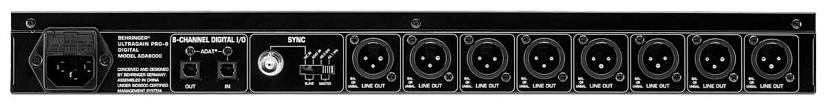 Behringer ADA8000 Ultragain PRO - инновационный 8-канальный аналого-цифровой/цифро-аналоговый преобразователь экстра-класса с 8-ю встроенными микрофонными предусилителями IMP, совместимый практически со всеми цифровыми рекордерами/микшерными пультами. Заключенный в компактный рэковый корпус, он дает возможность прямого подключения источников аналоговых сигналов к мультитрековому рекордеру или аналогичным устройствам через интерфейс ADAT.