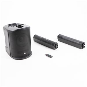 2-х полосная активная АС, мощность пик 200 Вт* (класс D), DSP процессор обработки, 8" сабвуфер, 4х2.75" саттелита, АЧХ 55 Гц-17 кГц, SPL 106 дБ, 3-канальный микшер, модуль Bluetooth 4.2, MP3-плеер, порты: USB и SD/MMC, входы: 1xXLR, 2хTS Jack, выход: XLR, габариты 330x440x1385 мм, масса комплекта 14 кг.