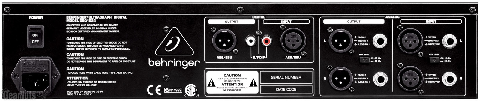 Цифровые интерфейс AES/EBU и S/PDIF предоставляет Вам изобилие возможностей подключений и выбор частоты дискретизации (44.1, 48 и 96 кГц). Коммуникационные возможности DEQ 1024 дополняют серво-сбалансированные входы и выходы на позолоченных XLR и 1/4 TRS-разъемах. Вы спокойно можете возить его по свету во время гастролей не опасаясь за несовместимость сетей: встроенный переключаемый блок питания (100 - 240 В~) гарантирует бесшумное звуковоспроизведение, превосходный транзиентный ответ и минимальное потребление электроэнергии.