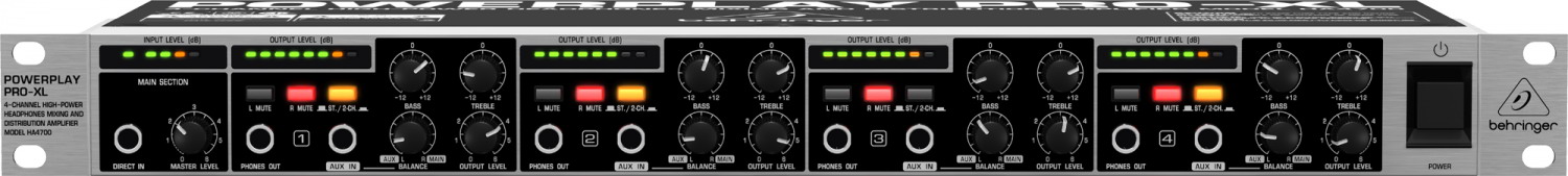 Behringer POWERPLAY PRO HA4700 – наиболее функциональный из предусилителей Behringer. Помимо базовых опций – измерения уровня сигнала и его перенаправления на несколько наушников – устройство поддерживает частотную коррекцию, подключение в разрыв дополнительных устройств, а также каскадное соединение нескольких предусилителей или другой аудиотехники. В сумме эти возможности позволяют определить HA4700 как студийный предусилитель премиум-класса, особенно полезный для предварительного прослушивания аранжировок перед окончательной записью и сведением.
