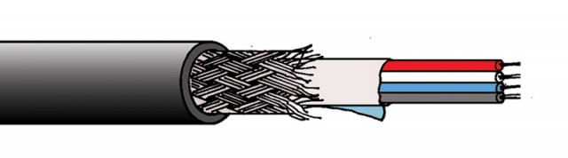 DMX кабель для применения в светотехнических аппаратах использующих протокол, сечение 0.34 мм², жила 7 х 0.25 мм, луженная медь, изоляция РЕ, экран из фольги + жилы, Ø-6.8 мм, оболочка PVC.