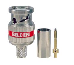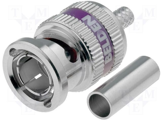 3-х компонентный BNC коннектор со стандартным обжимом, RG59 75 Ом, Max:6 GHz, HD-SDI/SMPTE 2081-1 6 Gb/s UHDTV, предназначен для кабеля RG59 (1505A/1505F/8241F), никелированный корпус.