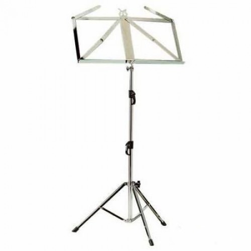 Профессиональный 3-х секционный пюпитр, регулируемая высота 65 - 130 см, не наклонная часть 43 см, размеры держателя нот: 43 х 22 см, прочная хромированная сталь, вес 1 кг.
