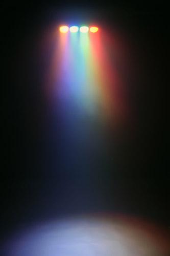 Светодиодная заливка, 4 блока, 140 диодов (35 red, 35 yellow, 35 green, 35 blue), звуковая активация, сектор луча 24°, переключатель "All On", выход для питания до 30 приборов.