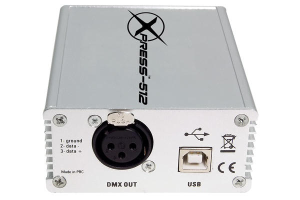 DMX USB интерфейс для программного обеспечения ShowXpress, хранение/использование 1 сцены в автономном режиме, совместим с Windows и Mac OS X, питание от USB.
