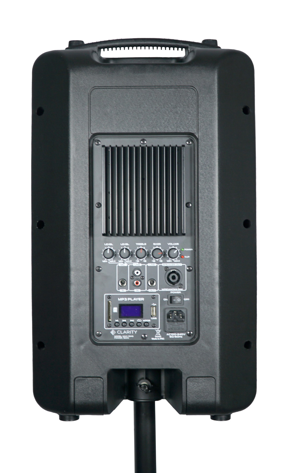 2-х полосная активная АС, мощность 150Вт, 10"НЧ динамик, 1" ВЧ драйвер, АЧХ 50 Гц-20 кГц, медиаплеер: USB/SD/FM/Bluetooth, встроенный процессор эффектов, 35 мм стакан, ABS пластик.
