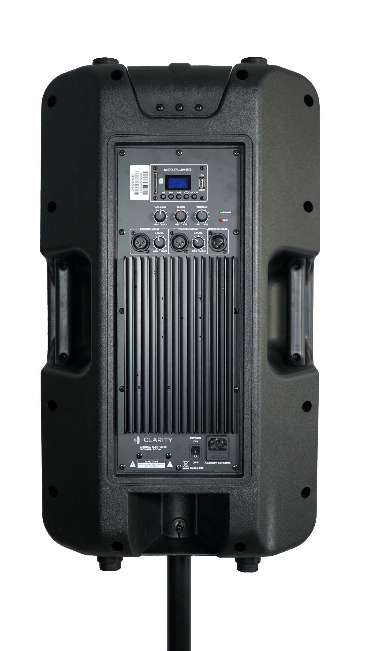 Clarity MAX12HD - включает в себя встроенный проигрыватель USB/SD, Bluetooth модуль и FM радиоприемник, а также 2 полосный эквалайзер и регулировку уровня громкости. Встроенный процессор эффектов ECHO и 2-х полосный мастер эквалайзер дают точную регулировку частот.