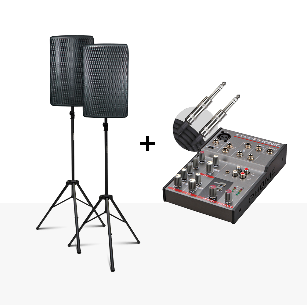 Комплект звукоусиления состоит из: активной АС Clarity MAX10HD (2 шт), кабели Mogami СJ-3 и СJ-6, стойки Clarity BT-ES50 (2 шт), патч-кабеля Shnir&Drit TP414/3JN, микшерного пульта Phonic AM 120MKII.