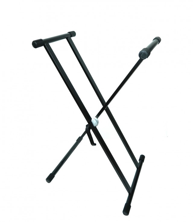 Двойная Х-стойка для клавишных инструментов, 1 уровень, зажим "крокодил", диаметр трубы: 28 мм, высота 500/1000 мм, глубина 360 мм/основа 450 мм, нагрузка до 60 кг, резиновые ножки с подстройкой, цвет: черный.
