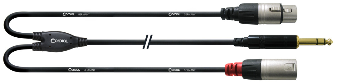 Готовый INSERT кабель разветвитель 6.35 мм TRS папа - 2x XLR папа/мама (Send/Return), коннекторы Rean XLR, сечение 0.22 мм², жила 28x0.10 мм, сопротивление 80 Ом/км, емкость 80 пФ/м, диаметр 5.9 мм, длина 3 м, цвет: черный.
