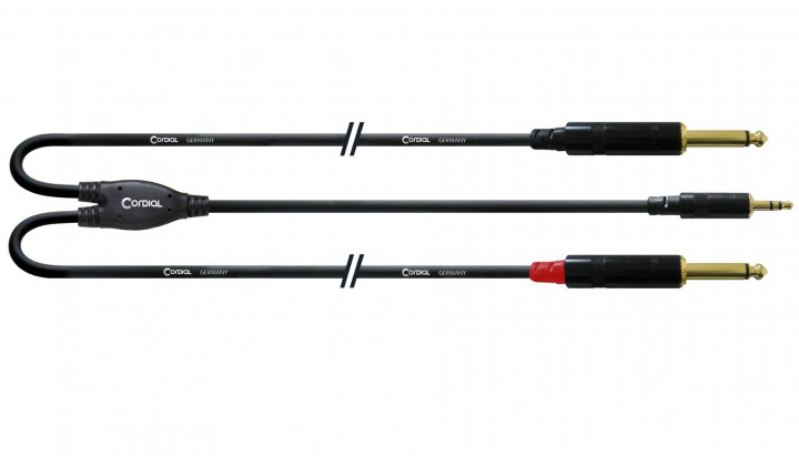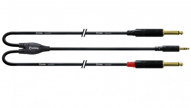Готовый несимметричный кабель разветвитель 3.5 мм TRS папа - 2x 6.3 мм TS папа, коннекторы Rean, сечение 0.22 мм², жила 28x0.10 мм, сопротивление 80 Ом/км, емкость 80 пФ/м, диаметр 5.9 мм, длина 3 метра, цвет: черный.