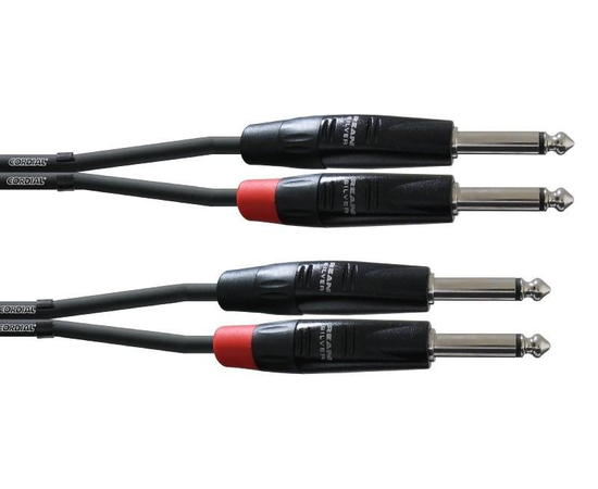 Готовый несимметричный двойной кабель 2х 6.3 мм TS Jack /2х 6.3 мм TS Jack, коннекторы Rean, длина 6 м, цвет: черный.