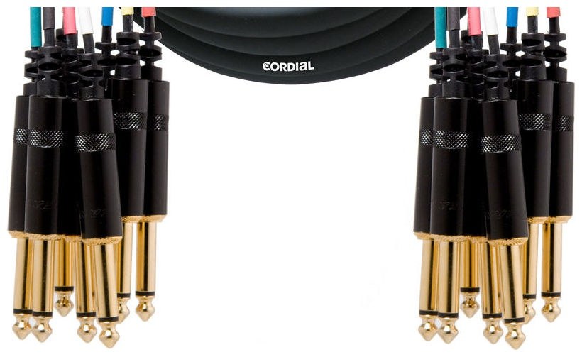 Студийный мультикорный небалансный кабель, 8x1/4 TS Jack - 8x1/4 TS Jack, основа Cordial essentials 6, длина 5 метров/разделение линий по 40 см., коннекторы REAN® NYS224BG, кабель 0.22 мм² (PVC), цветовая маркировка каналов.