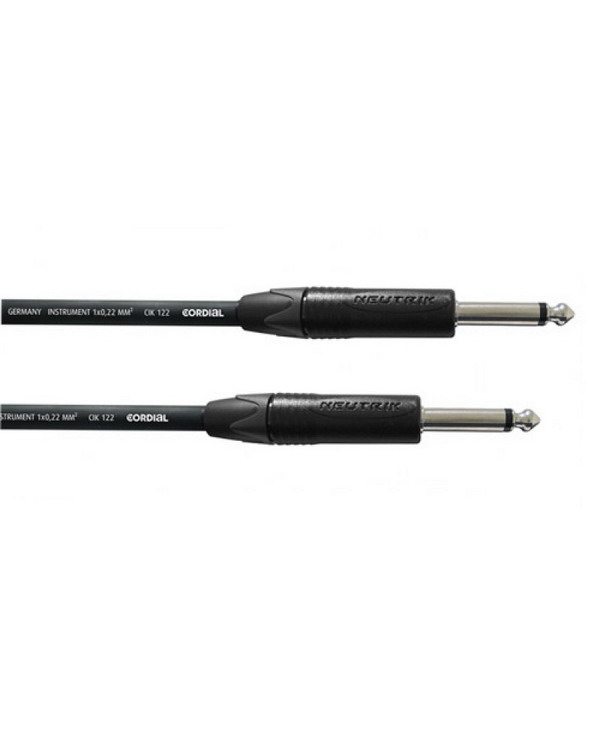 Небалансный кабель, прямой 6.35 мм TS - прямой 6.35 мм TS, сечение 0.22 мм², жила 7x0.20 мм, импеданс 85 Ω/км, емкость 130 пФ/м, диаметр: 6.1 мм, коннекторы: Neutrik NP2X, длина 6 м, цвет: черный.