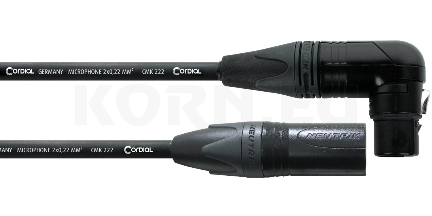 Готовый микрофонный кабель, прямой 3-pin XLR папа/угловой 3-pin XLR мама, основа: кабель CMK 222, коннекторы NEUTRIK NC3FRX/NC3MXX, сечение 0.22 мм², сопротивление 85 Ом/км, емкость 55 пФ/м, диаметр: 6.4 мм, длина 75 см.