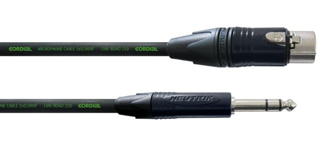 Готовый микрофонный кабель 3-pin XLR мама/6.3 мм TRS папа, основа: кабель CMK Road 250, коннекторы Neutrik NP2X-B/Neutrik NC3FXX, длина 10 м, цвет: черный.