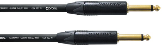 Инструментальный кабель, прямой 6.35 мм TS - прямой 6.35 мм TS, основа: CGK 122, сечение 0.22 мм², жила 7x0.20 мм, импеданс 87 Ω/км, емкость 82 пФ/м, диаметр: 7.2 мм, коннекторы: Neutrik NP2X, длина 3 м, цвет: черный.