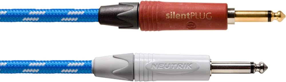 Инструментальный кабель, серия PEAK, прямой с выключателем 6.35 мм TS - прямой 6.35 мм TS, основа: CIK 122, сечение 0.5 мм², жила 28x0.15 мм, импеданс 39 Ω/км, емкость 88 пФ/м, диаметр: 7.0 мм, коннекторы: Neutrik NP2X/NP2X AU Silent, длина 6 метров, оболочка: PVC+нейлон, цвет: синий/белый.