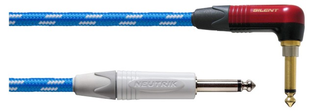 Инструментальный кабель, серия PEAK, угловой с выключателем 6.35 мм TS - прямой 6.35 мм TS, основа: CIK 122, сечение 0.5 мм², жила 28x0.15 мм, импеданс 39 Ω/км, емкость 88 пФ/м, диаметр: 7.0 мм, коннекторы: Neutrik NP2X/NP2RX AU Silent, длина 6 метров, оболочка: PVC+нейлон, цвет: синий/белый.