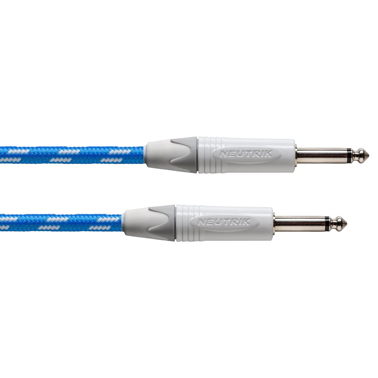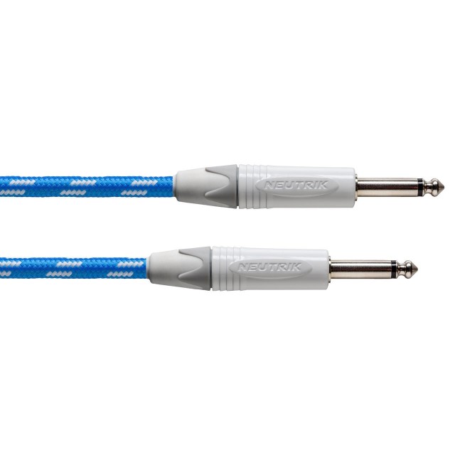 Инструментальный кабель, серия PEAK, прямой 6.35 мм TS - прямой 6.35 мм TS, основа: CIK 122, сечение 0.5 мм², жила 28x0.15 мм, импеданс 39 Ω/км, емкость 88 пФ/м, диаметр: 7.0 мм, коннекторы: Neutrik NP2X, длина 9 метров, оболочка: PVC+нейлон, цвет: синий/белый.